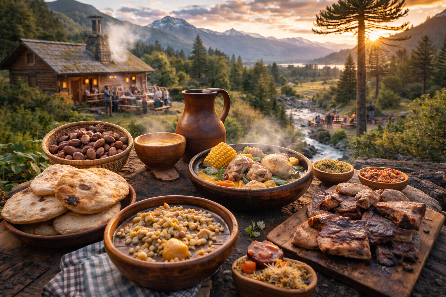 Viajar al Alto Biobío no solo es una experiencia visual, sino también culinaria. La gastronomía de la zona refleja la riqueza cultural del territorio y la tradición del pueblo pehuenche.